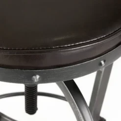 Center your kitchen or dining space with a sleek, edgy look by accenting your interior décor with our swivel barstool. This barstool offers an exceptional industrial modern appeal for any space with its wrought-iron frame and distressed firwood seating. Ideal for those who have a variety of guests, this seat offers adjustable and swivel functions for easy maneuverability and personalization, making this a perfect fit for all. With its refined design and flawless capabilities, this impressive barstool allows you to create an atmosphere of raw charm.